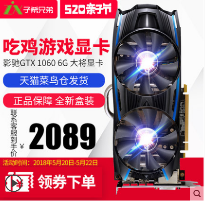 影驰GTX1060大将6G台式机电脑游戏显卡绝地求生吃鸡独立显卡