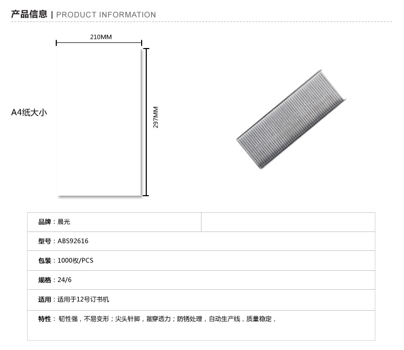 • 商品名称:晨光12号订书钉ABS92616