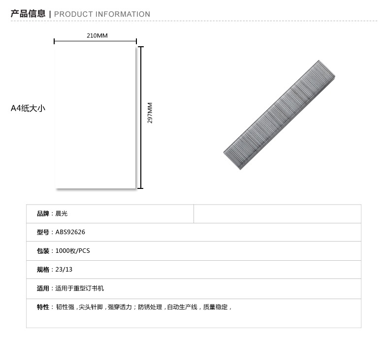 • 商品名称:晨光23/13厚层订书钉ABS92626