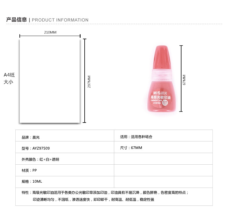 • 商品名称:晨光高级光敏印油(红)AYZ97509