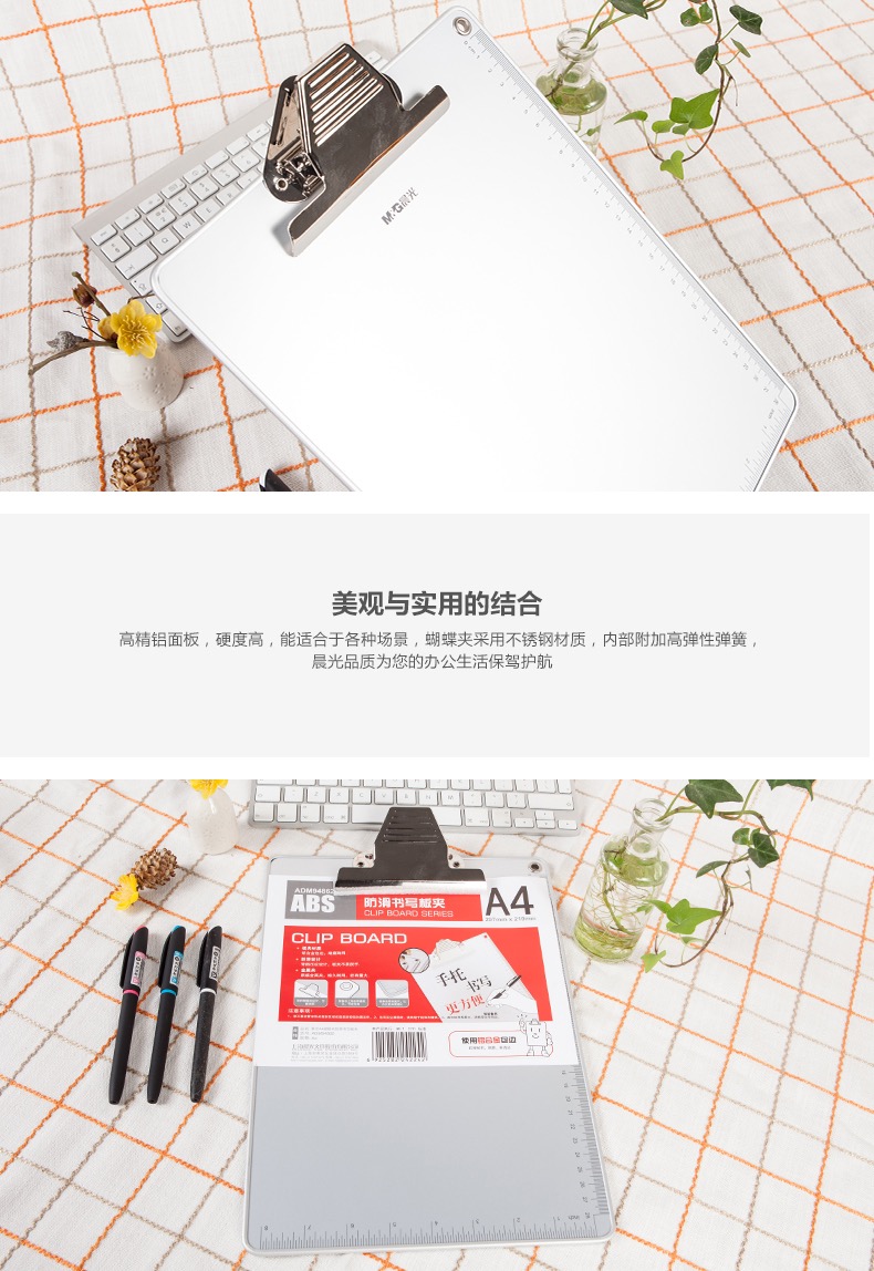 • 商品名称:晨光A4板夹蝴蝶夹防滑书写ADM94862