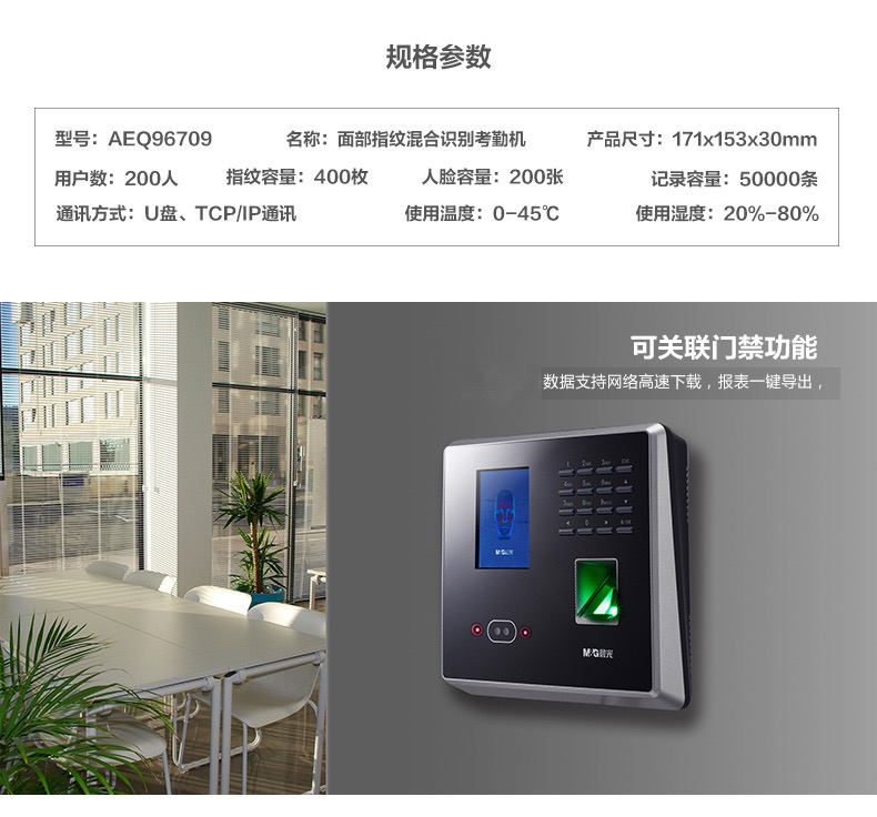 • 商品名称:晨光面部指纹混合识别考勤机AEQ96709