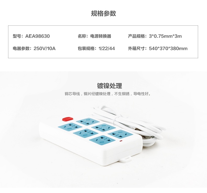 • 商品名称:晨光标朗3米线总控双排6孔插座AEAS98630