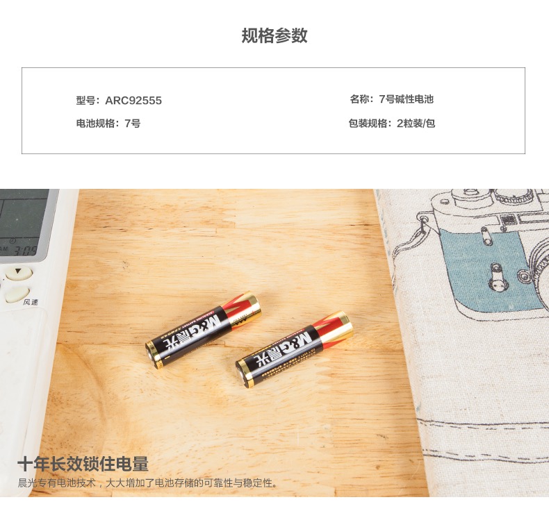 • 商品名称:晨光7号碱性电池(2粒吸卡)ARC92555