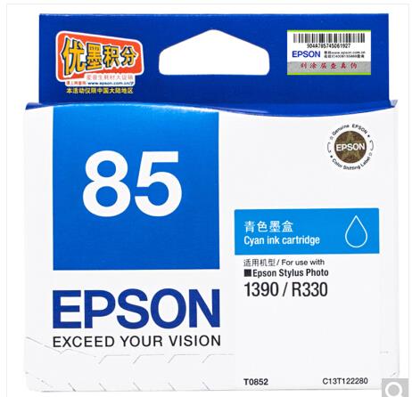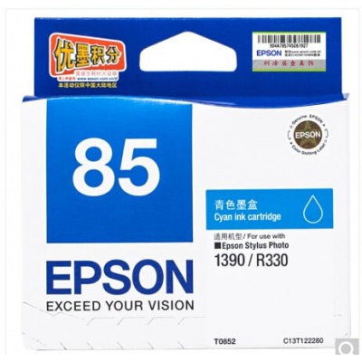 • 商品名称:爱普生(Epson)T0852 (T1222) 青色墨盒 C13T122280(适用PHOTO 1390 R330)