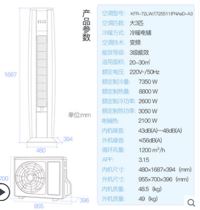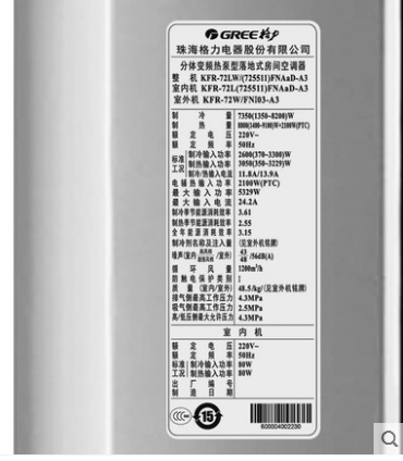 • 商品名称:Gree/格力 KFR-72LW/(725511)FNAaD-A3三匹变频客厅空调立式柜机