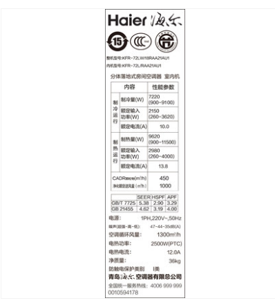 • 商品名称:Haier/海尔 KFR-72LW/18RAA21AU1变频柜式空调