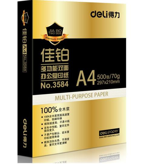• 商品名称:得力(deli) 3585A4 佳铂复印纸 70g 500张/包 5包/箱