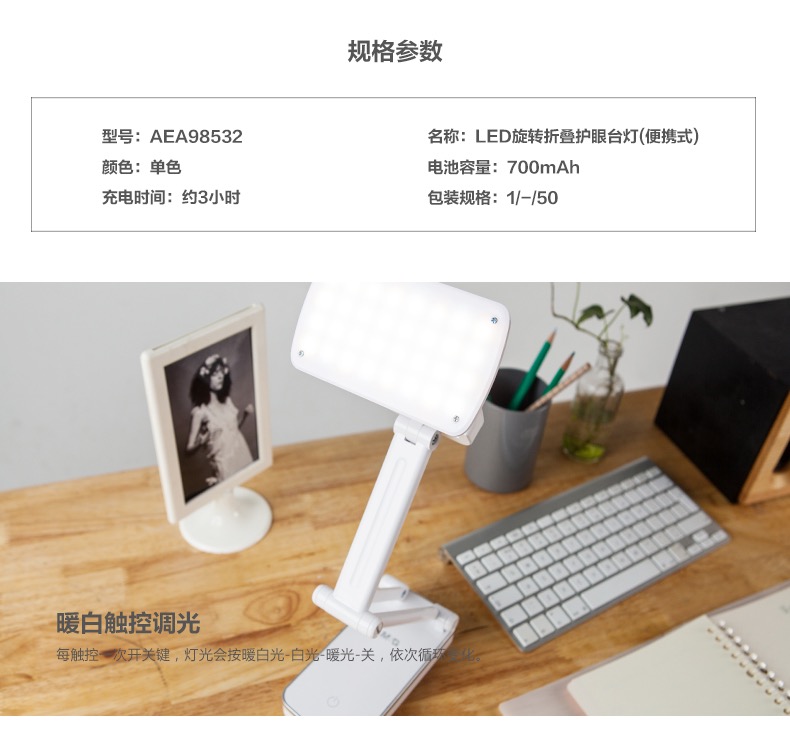• 商品名称:晨光LED旋转折叠护眼台灯(便携式)AEAS98532