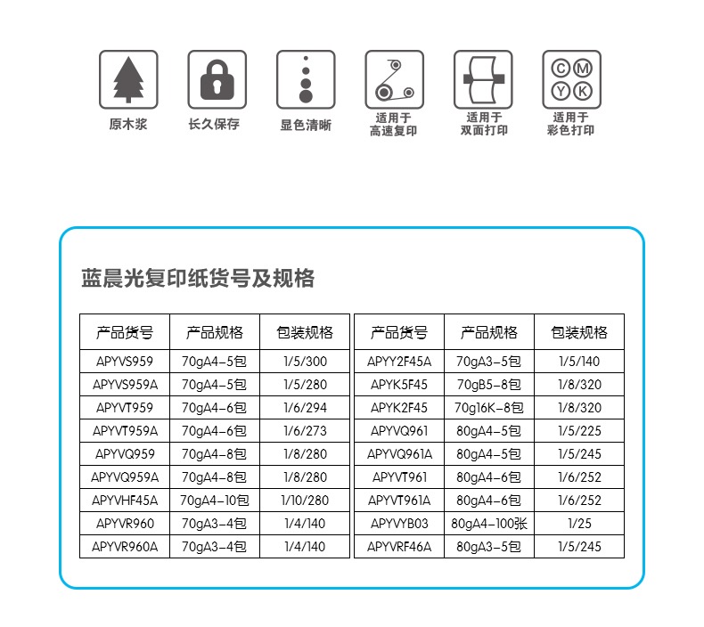 • 商品名称:晨光蓝晨光多功能复印纸70gA4-5包APYVS959C