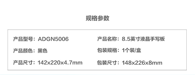 • 商品名称:晨光8.5英寸经典液晶手写板ADGN5006