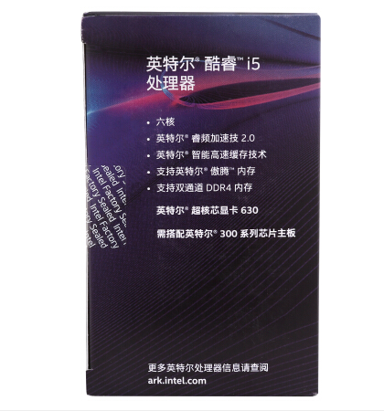 • 商品名称:英特尔(Intel)i5 8500 酷睿六核 盒装CPU处理器