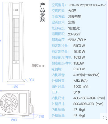 • 商品名称:Gree/格力 KFR-50LW/(505511)NhAaD-3 大2匹定频冷暖客厅空调立式