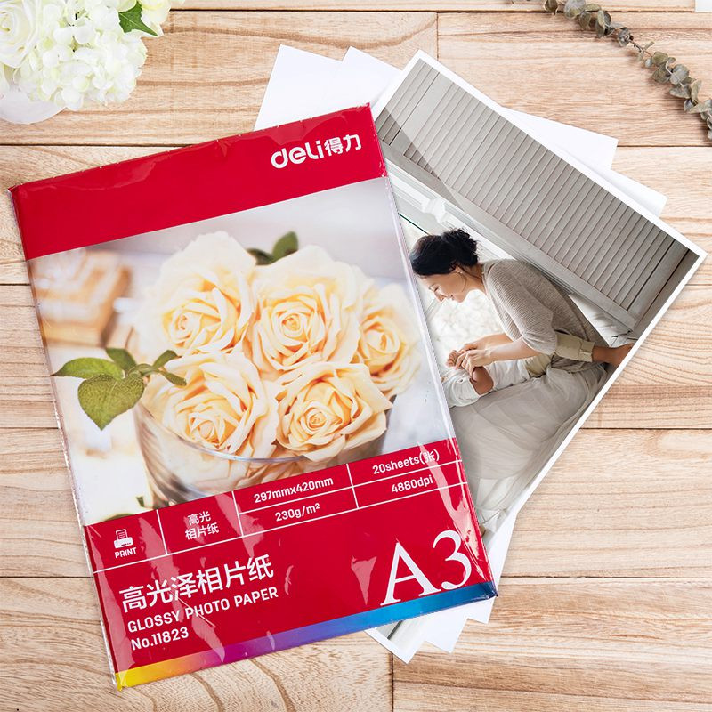 得力(deli) 230gA3高光相片纸/照片纸 11823 20张/包