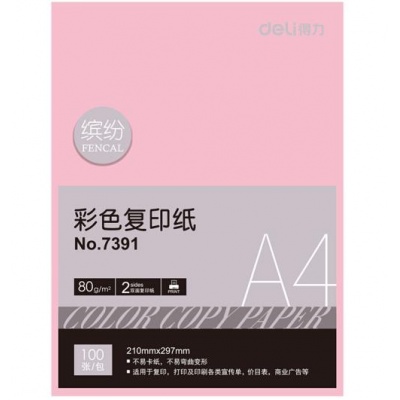 • 商品名称:得力(deli) 7391A4 浅红色彩色复印纸 80g 100张/包 单包装