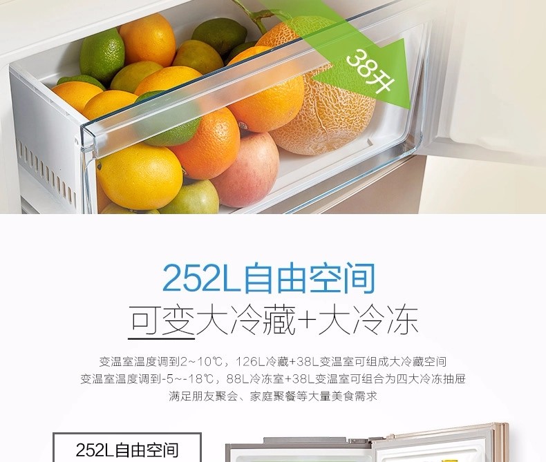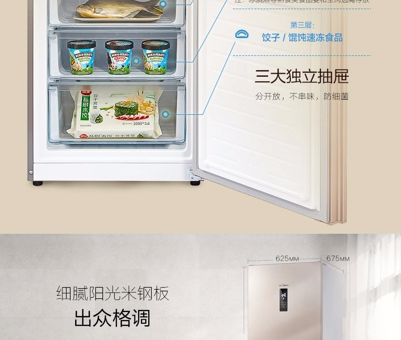 • 商品名称:【新品】美的(Midea)冰箱三门 小型家用 无霜变频冰箱 三门冰箱 BCD-252WTPM(E)