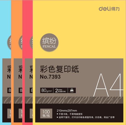 • 商品名称:得力(deli) 7393A4 深黄色彩色复印纸 80g 100张/包 单包装