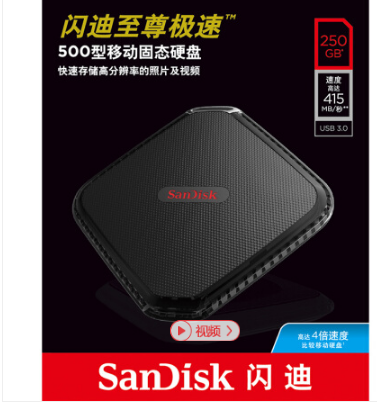 • 商品名称:闪迪(SanDisk)至尊极速 500型移动固态硬盘 250GB 读415MB/秒